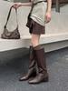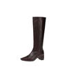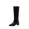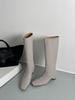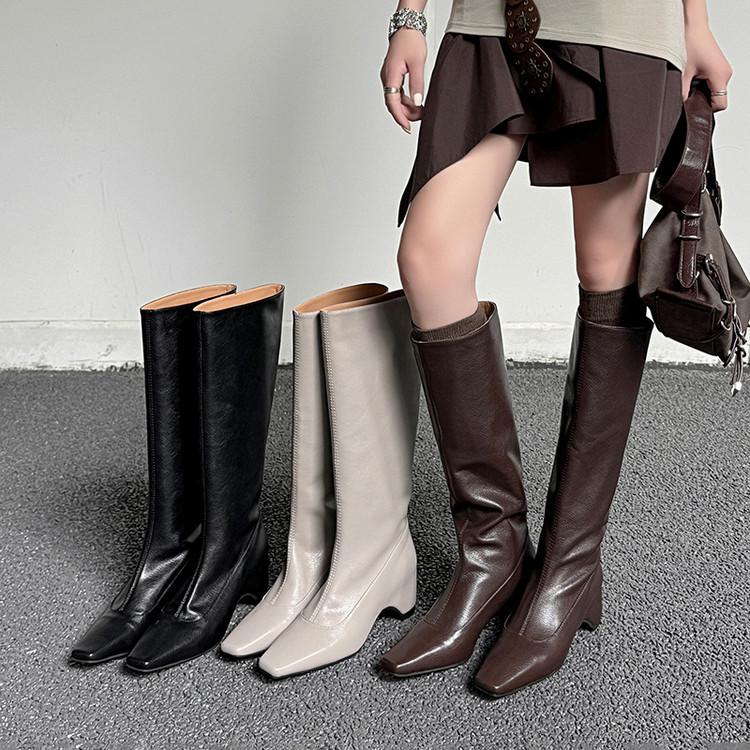 Niche square head thick heel soft leather high trouser boots fried street hot girl height increase white but knee knight boots