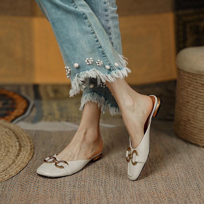 Våren 2025 nye retro hestesetespenn Muller tøfler dame sommer nisje yttertøy veske hode lav hæl halv slep dame tøfler