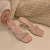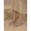 Simple wind silver rhinestone slippers female summer 2025 new fairy wind Roman transparent thick heel non-slip cool slippers