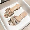 Red slippers women's tide wear thick heel non-slip rhinestones summer 2025 new printed outdoor women's sandals shoes