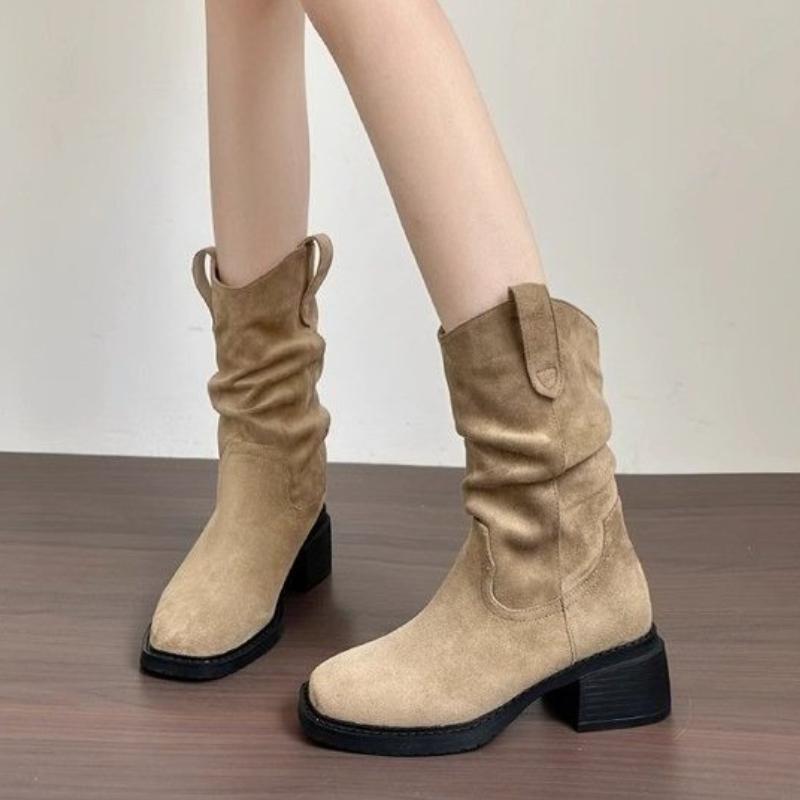 Fashion Luxury Women's Boots Fall Square Heel Ankle Boots Fashion Pleated Designer High Heels for Women New Suede Chelsea Boots Zapatos