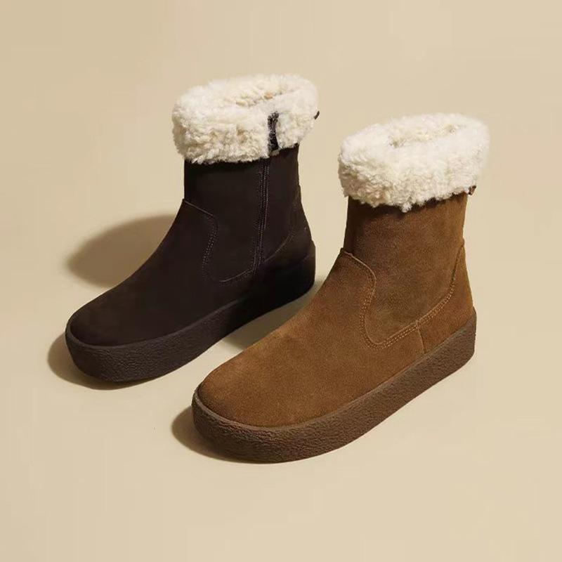 Frosted leather thick-soled snow boots for women's autumn and winter new plush warm thickened Boken short boots fluffy cotton shoes