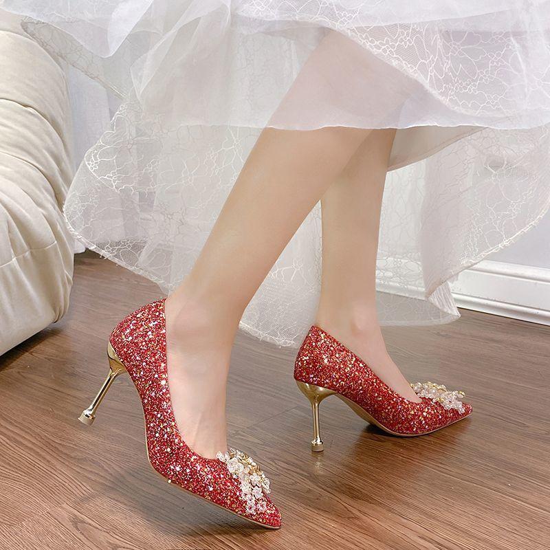 Versatile niche bride shoes women's high heels women's spring and summer new beautiful wedding shoes not tired feet high heels women