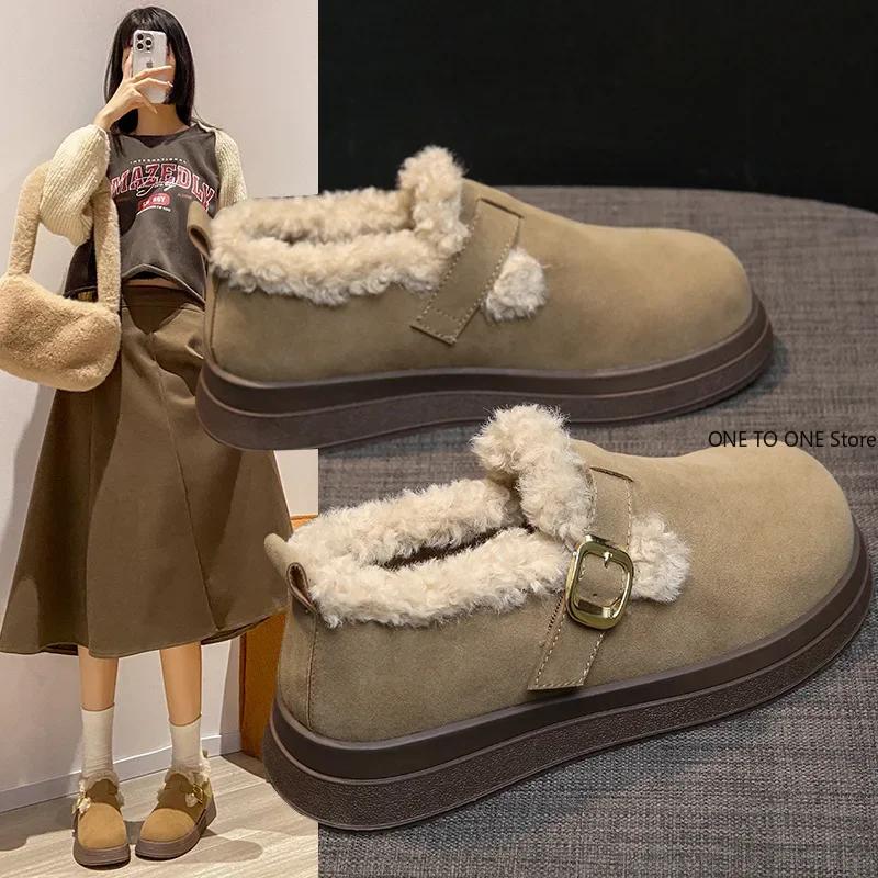 Fashion New Soft Round Toe Winter Shoes Women Casual Sneakers Female Flats Clogs Platform Loafers With Fur Autumn Dress Retro Creepers