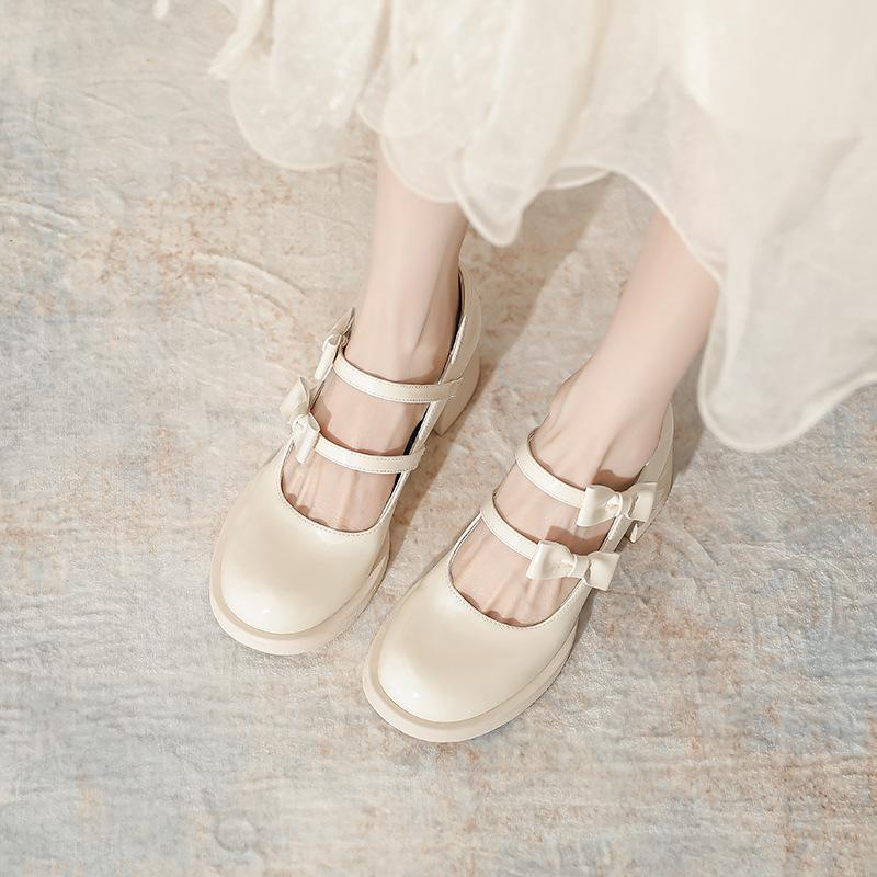 French beautiful high-heeled Mary Jane shoes women's 2025 early spring new round head thick heel bow college style jk single shoes