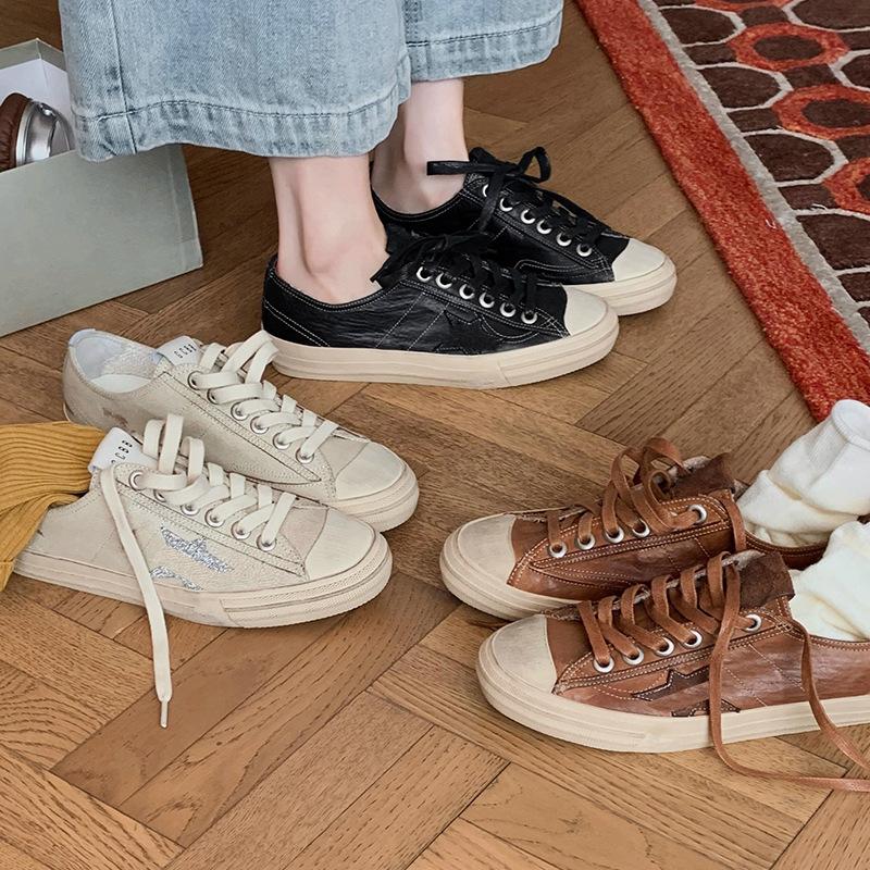 Grape mother studiolee cowhide made old dirty shoes retro lace-up casual star board shoes women's small dirty shoes