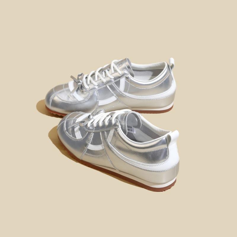 Korean silver German training shoes for women's 2025 summer new bow inner height increase sports board shoes ballet style casual trend