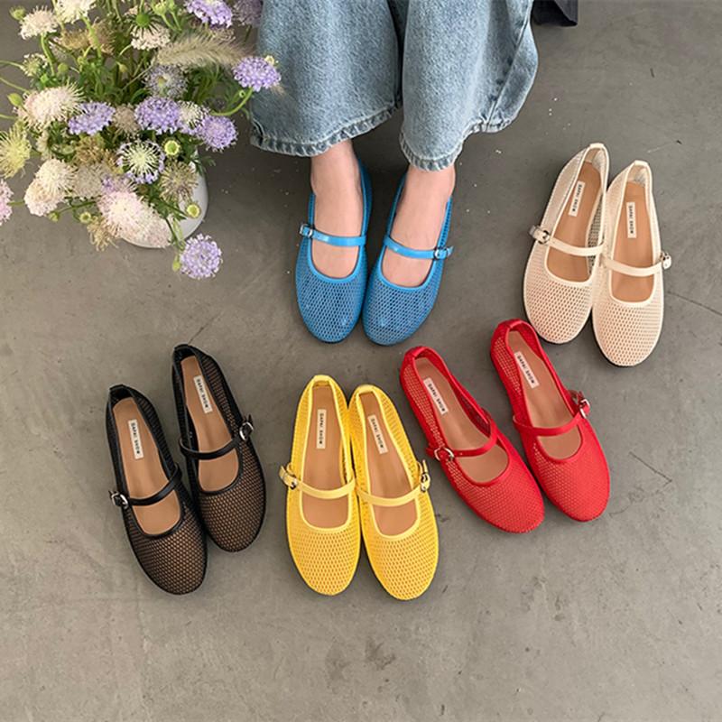 Fashion Bailamos Women Flats Summer Wear Round Toe Straight Buckles Sandals Casual Comfortable Flats Cut-out Mary Jane Single Shoes