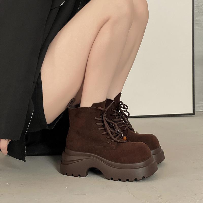 Fashion versatile thick-soled height-increasing and thin Martin boots women's 2025 autumn and winter new lace-up muffin-bottom locomotive boots wome