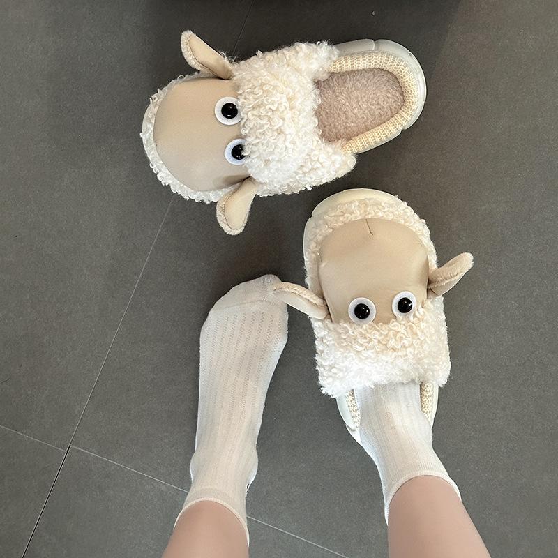 Fashion plush cute cartoon lamb cotton warm mop girl 2025 autumn and winter new room plush bag head mop