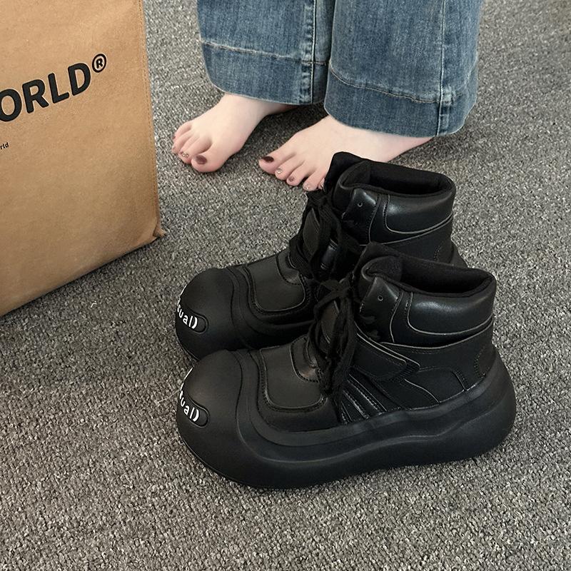 Comfortable ugly cute thick-soled heightening casual women's high-top shoes autumn and winter fashion lace-up versatile velvet fashion boots