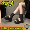 Hollow square head wedge heel thick sole summer heightening fashion word with breathable short boots comfortable thick heel Roman sandals women
