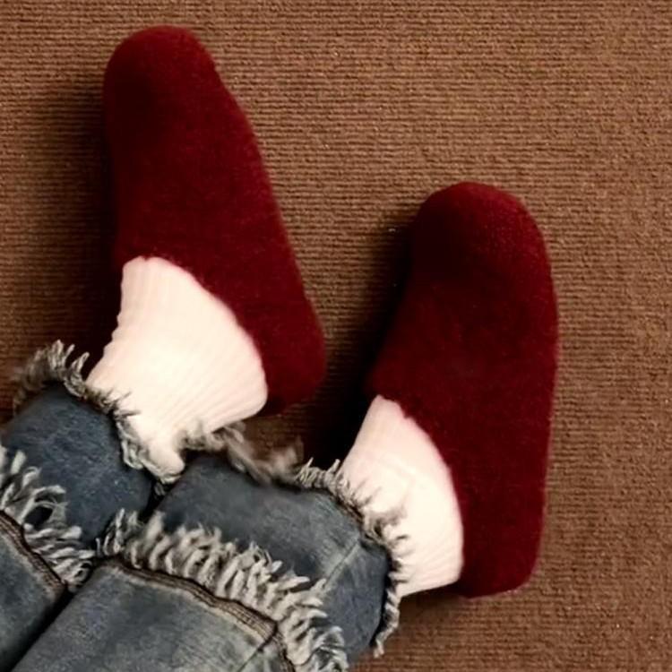 Lam allsidig veske hode halv tøfler dame 2025 høst og vinter plysjsko yttertøy lat flat bunn myk bunn bomull mopp