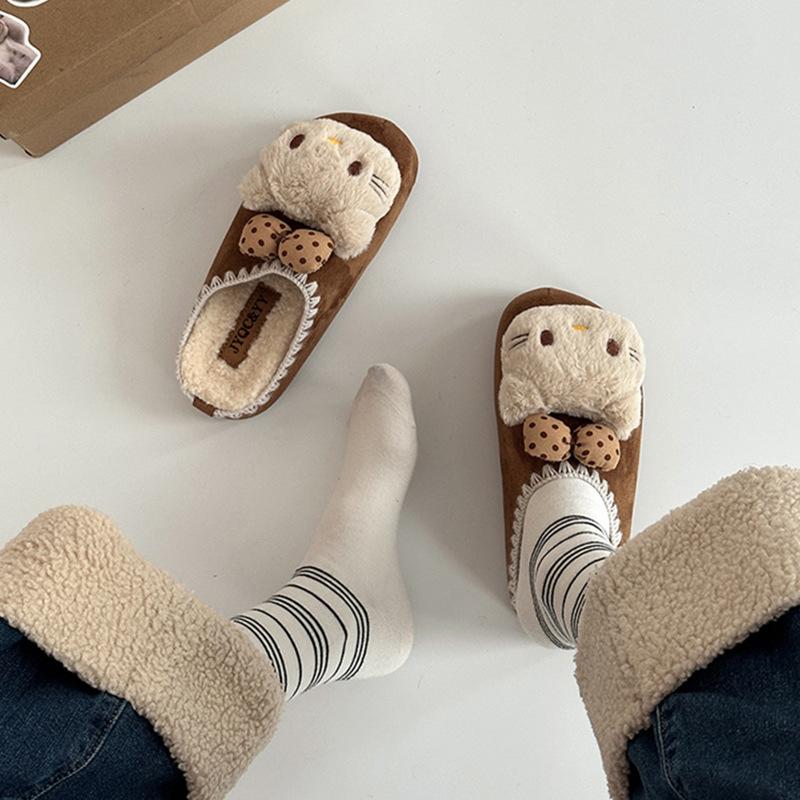 Fashion and cute cartoon cat bag head versatile casual slippers women's new velvet slippers in autumn and winter 2025