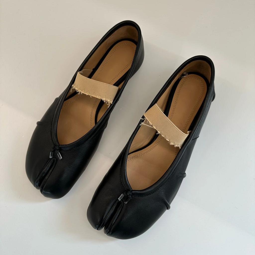 Sheepskin version~ Beautiful one-word leather split-toed shoes women's spring soft-soled ballet shoes small heels Mary Jane single shoes