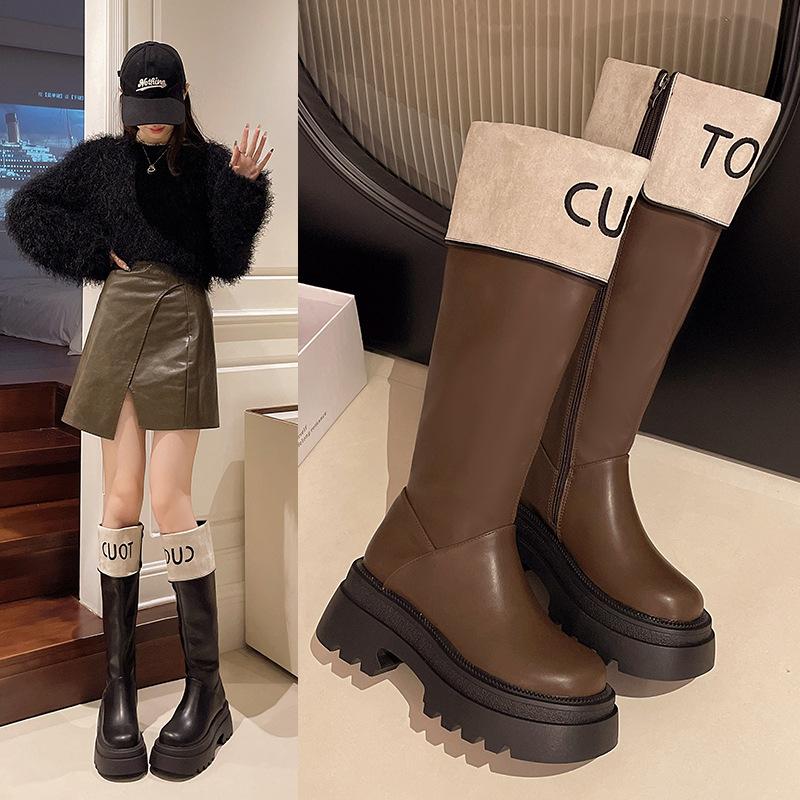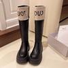 Fargematchende støvler med tykk såle for kvinners høst- og vinter 2025 nye Xiaoxiangfeng høye ridestøvler, små, men knestøvler