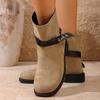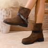 Large size autumn and winter new round head thick heel thin women's versatile soft sole buckle casual Martin boots