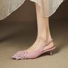 New rear empty sandals summer women's medium heel bag head sandals comfortable beef tendon soft sole buckle leather sandals stiletto