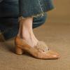 Four seasons wear square heel single shoes new fashion single shoes women's solid color casual leather large size shoes light mouth low top beef