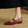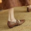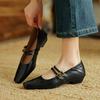 New women's foot shoes comfortable beef tendon sole casual four seasons small leather shoes large size leather women's shoes square head low heel