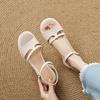 New round head high-heeled sandals casual summer buckle wide strip sandals women's rubber thick sole non-slip large and small size women's shoes