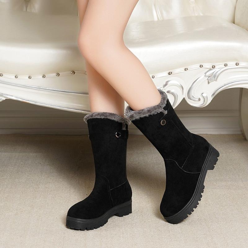 Høst og vinter nye runde tå varme middels skaft bomullssko dame vinter fløyel fortykket komfortable allsidige støvler motestøvler dame