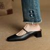 Summer women's high-heeled slippers new bag head slippers leather square head one pedal casual solid color large size cool slippers