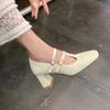 Square heel buckle non-slip beef tendon sole single shoes, new comfortable cowhide fashion single shoes for women, square head high heel small leath
