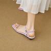 Summer women's one-word sandals Korean version comfortable beef tendon soft sole large size new flat sandals buckle back empty leather