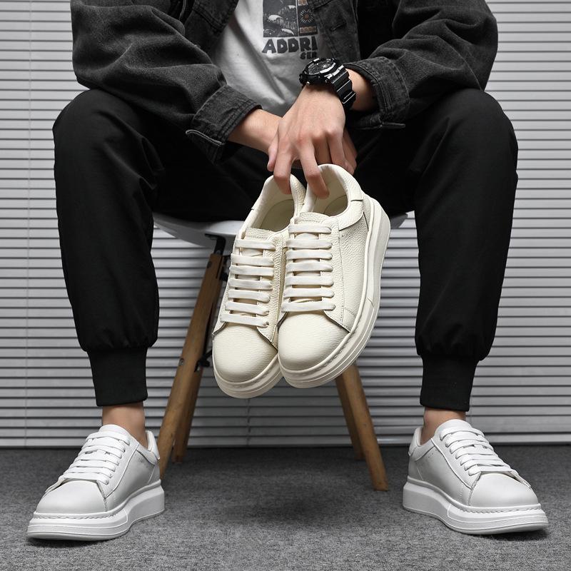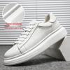 Opplev den perfekte blandingen av stil og funksjonalitet med disse hvite joggeskoene i ekte skinn for menn.. Disse lavkutte joggeskoene er designet med en tykk gummisåle, og gir utmerket støtte og komfort, noe som gjør dem ideelle for både forretnings- og sportsaktiviteter.. Det pustende mesh-fôret sikrer en komfortabel passform, mens snøringstypen gir en sikker og justerbar passform.. Disse allsidige joggeskoene er laget med omhu i Kina og er et utmerket tilskudd til enhver garderobe.