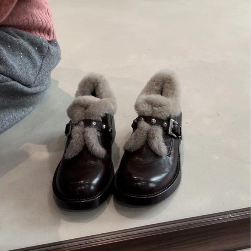 Women's Lightweight Thick-Sole Winter Insulated Snow Boots Leather and Fur Combination Slip-Resistant Durable Casual Athletic Cotton Boots