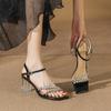 With skirt silver high heels summer new rhinestone word with crystal thick heel sandals