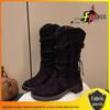 Step into an edgy fusion of style and comfort with these mid-calf slouchy boots, designed to make a statement. Perfect for autumn and winter, these boots boast a retro, post-apocalyptic Western flair, complete with eye-catching tassels that add a touch of rugged elegance to any ensemble. The durable rubber sole offers excellent traction and stability, while the insole featuring microfiber ensures comfort during long wear. Lined with both leather and synthetic materials, these boots provide warmth and durability. The convenient zipper closure allows for easy on and off, making them a fantastic blend of functionality and unique style.