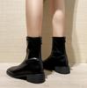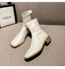 Chunky Med-High Heels Boots Women Zip Square Toe Chelsea Shoes Winter Solid Leather Botas Ankle Feminina Slim Botines Mujer