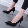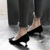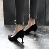 2025 vår og høst nye allsidige internettkjendiser svarte høyhælte damesko tynne hæler spisse kattesko damesko bryllupssko enkeltsko