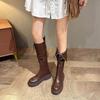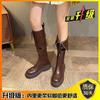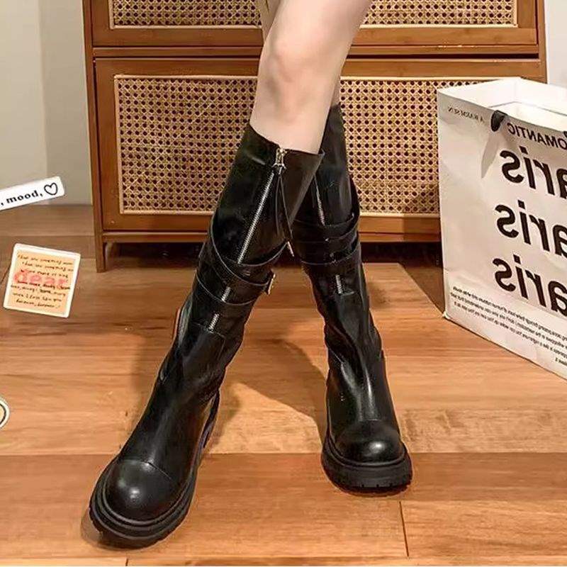 Maillard style soft leather fashion boots women's autumn and winter 2025 new belt buckle boots platform knight boots high boots
