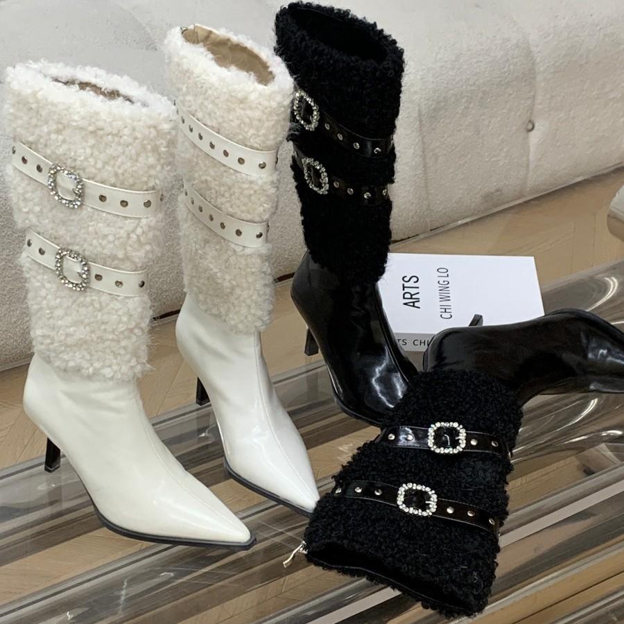 Fashion pants boots 2025 autumn and winter new pointed high heel temperament sleeve rivet belt buckle fashion short boots