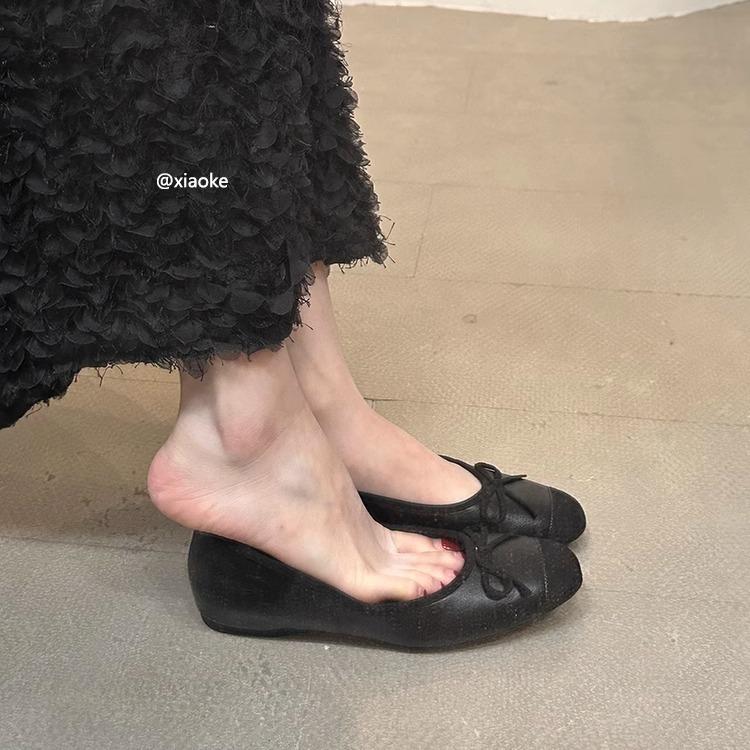 Inner height-increasing ballet shoes 2025 spring and summer new shallow bow single shoes grandma shoes commuter Mary Jane shoes