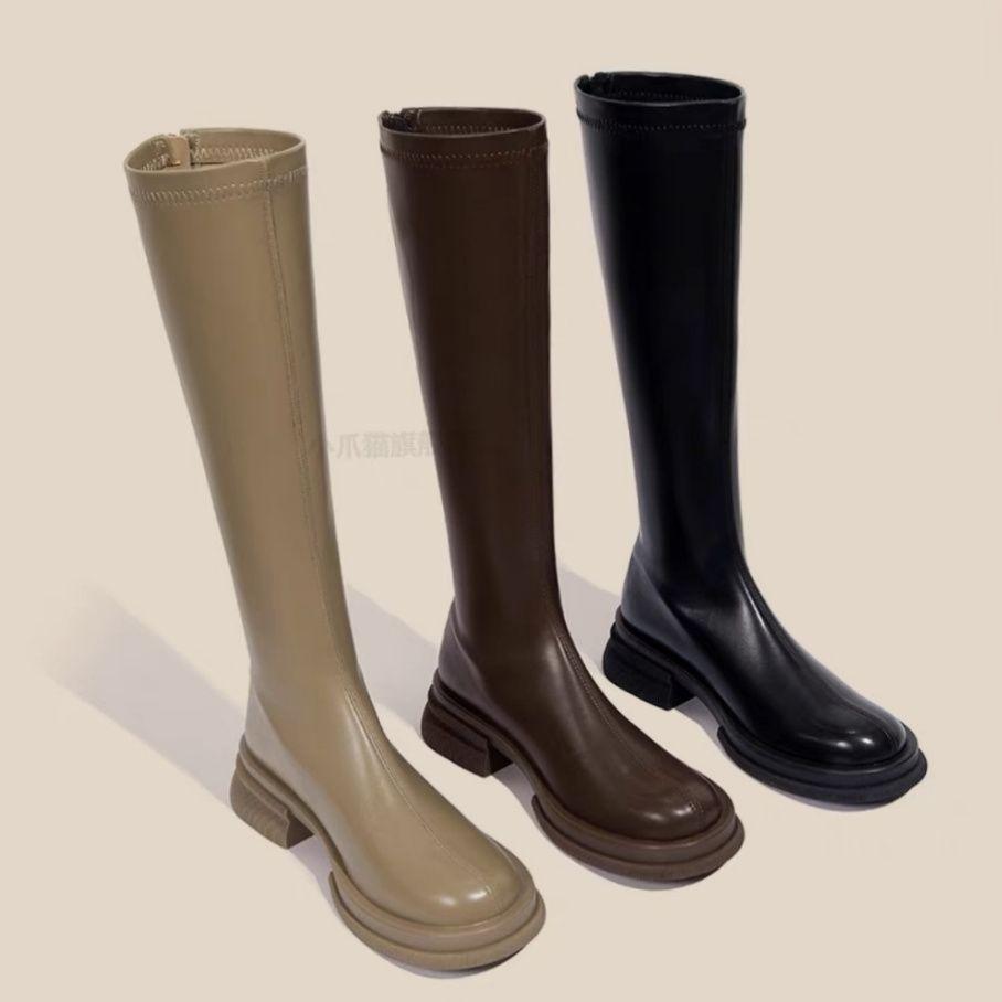 2025 men knehøye støvler ridestøvler tynne elastiske støvler tykksålede høye støvler høst- og vinterstøvler dame