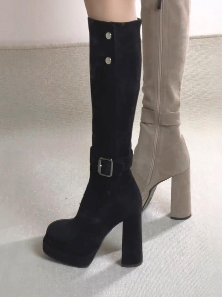 Retro two-wear high-heeled boots for women's 2025 new autumn and winter versatile and thin, heel but knee knight boots