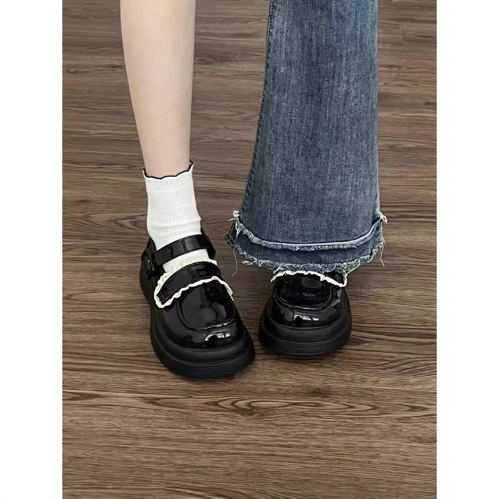 Round head black platform small leather shoes women's college style versatile 2025 new autumn and winter retro French Mary Jane single shoes