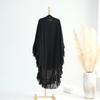 1. **Ruffled Long Chiffon Muslim Abaya**: This elegant abaya features a ruffled design and is crafted from lightweight chiffon fabric. It comes with a matching solid color headscarf, making it perfect for Ramadan and other special occasions. This one-piece prayer dress is ideal for women in Dubai, Saudi Arabia, and beyond, offering both style and modesty in a classic black robe.