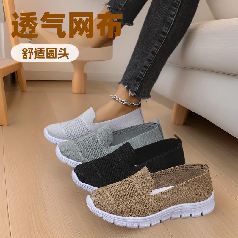 2025 foreign trade new mesh breathable women's casual single shoes large size round toe thick sole one-foot slip-on shoes