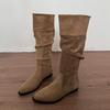 Vintage Pleated Women Knee High Boots Fashion Low Heels Pointed Toe Shoes Autumn Winter Slip On Modern Long Botas Para Mujer