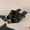 Fashion Fashion Pointed Toe Women Medium Heels Pumps Slides Shoes Slip On Footwear Shallow Ladies Thin Heels Shoes Female Sandals