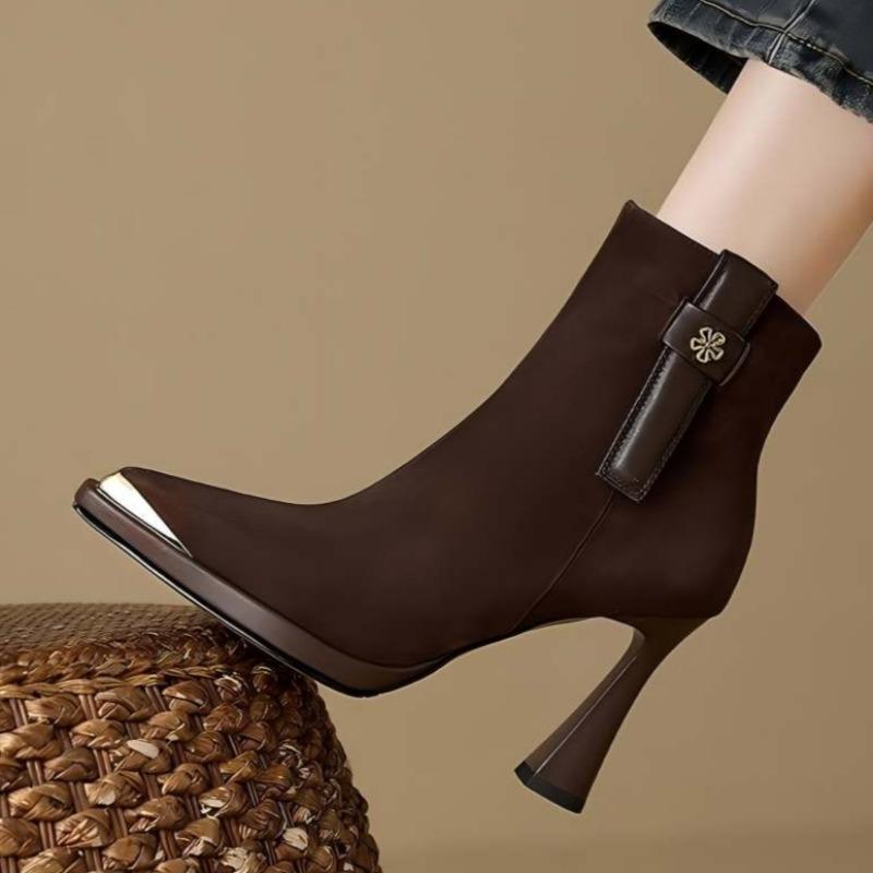 Pointed Toe Women Ankle Boots Elegant High Heels Shoes New Sexy Pumps Winter Suede Goth Casual Woman Heeled Chelsea Botas