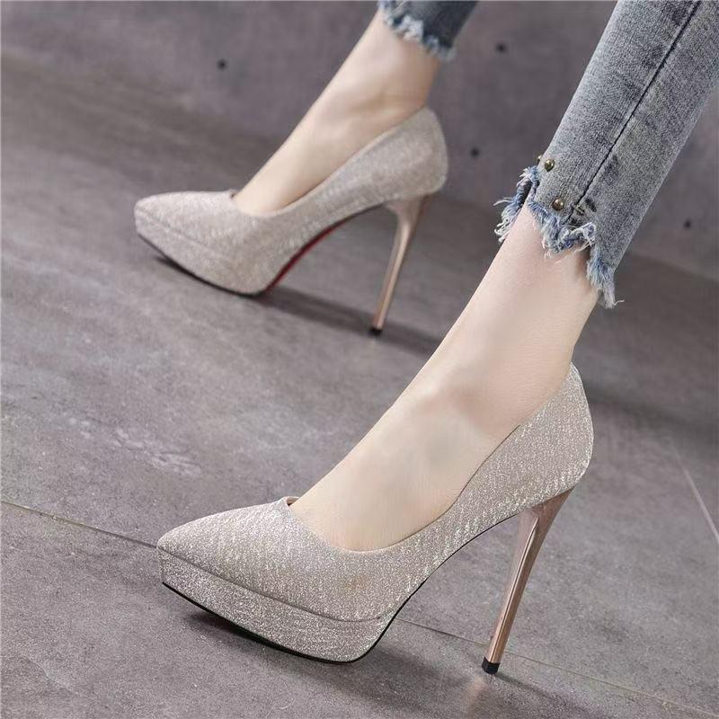 2025 Women's Stiletto Heels: Banquet Evening Dress Shoes with 12CM Waterproof Platform and Pointed Toe High Heels