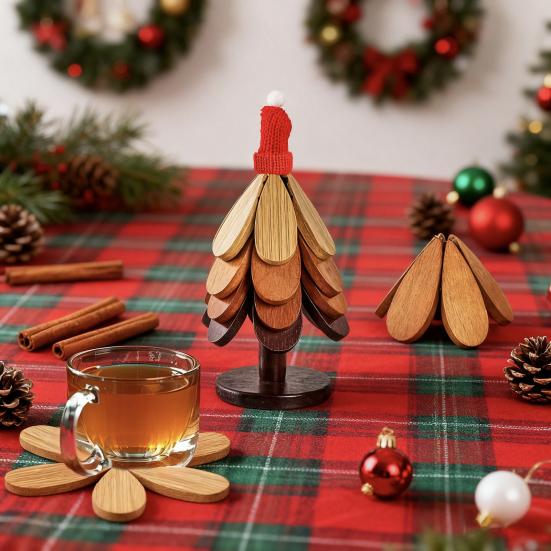 Space-Saving Decorative Gift Idea: Transform your kitchen into a festive wonderland with these multifunctional coasters that store compactly like a Christmas tree. Ideal as coffee coasters or pan mats, they make excellent tabletop decorations and thoughtful gifts for family and friends during the holiday season.