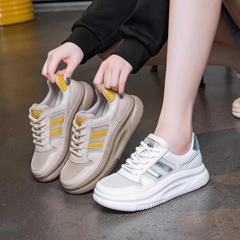 Pustende små hvite sko i mesh for kvinner, nye for vår og høst, fritidssport-boardsko med myk såle, platåsko, pappa-sko