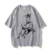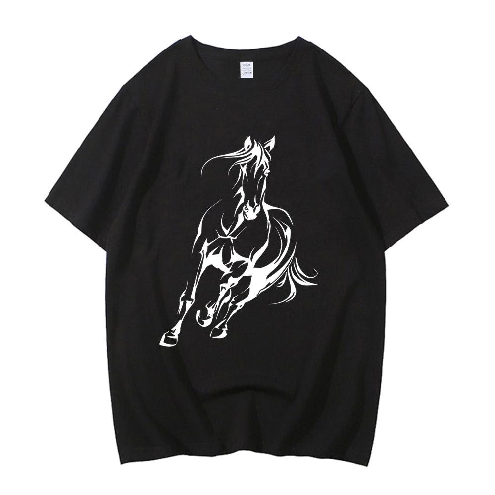 Men's Summer High Quality Cotton T Shirt Casual Loose Running Horse Pattern Printed Round Neck Short Sleeved T-shirt Top